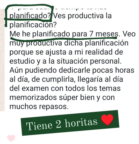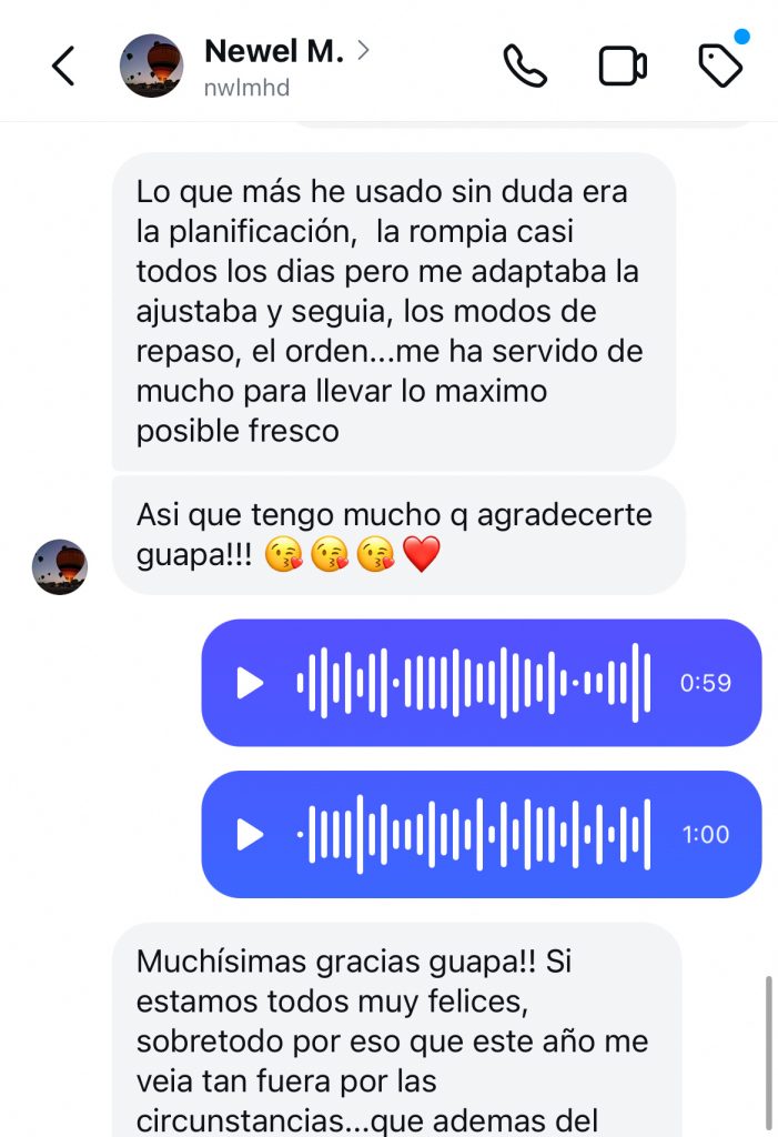 Ahora conozco exactamente lo que tengo que estudiar cada día y me siento segura al ver que puedo cumplir la planificación.