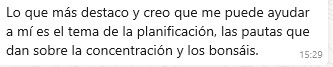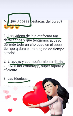 -El acompañamiento, Rocio eres la mejor. Mil gracias por los ánimos, las buenas palabras que siempre has tenido hacía las situaciones de no he hecho, no he podido etc. Porque he vivido realmente momentos de enfermedad propia e hijo horribles, por lo que realmente no he podido sacar todo el provecho al curso y demás.