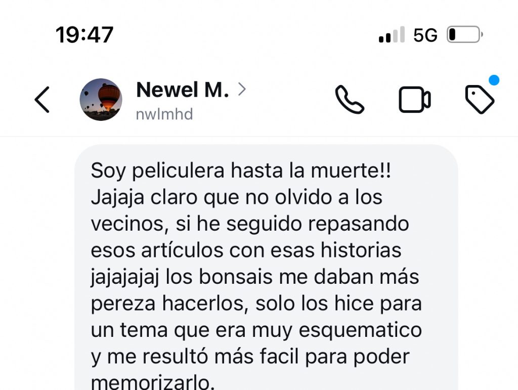 Destacó Pues tanto bonsái como películas, ya que muchas veces hago un mix de los dos.