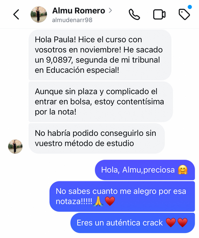 Muchas gracias chicas habéis marcado un antes y un después en mi oposición!!