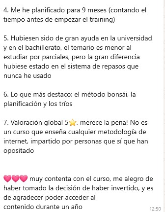 Está claro que luego el trabajo es de cada uno y que nadie regala nada, pero a mi me ha ayudado a saber cómo estudiar, cómo planificarme, cómo hacer repasos