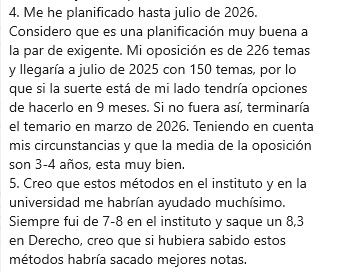 Y la verdad que a día de hoy muy bueno, he aprendido a organizarse a través de la planificación que es lo más siendo multiempleada(madre, trabajo y opo) ayuda muchísimo a no perderte en todo lo que se tiene que estudiar.